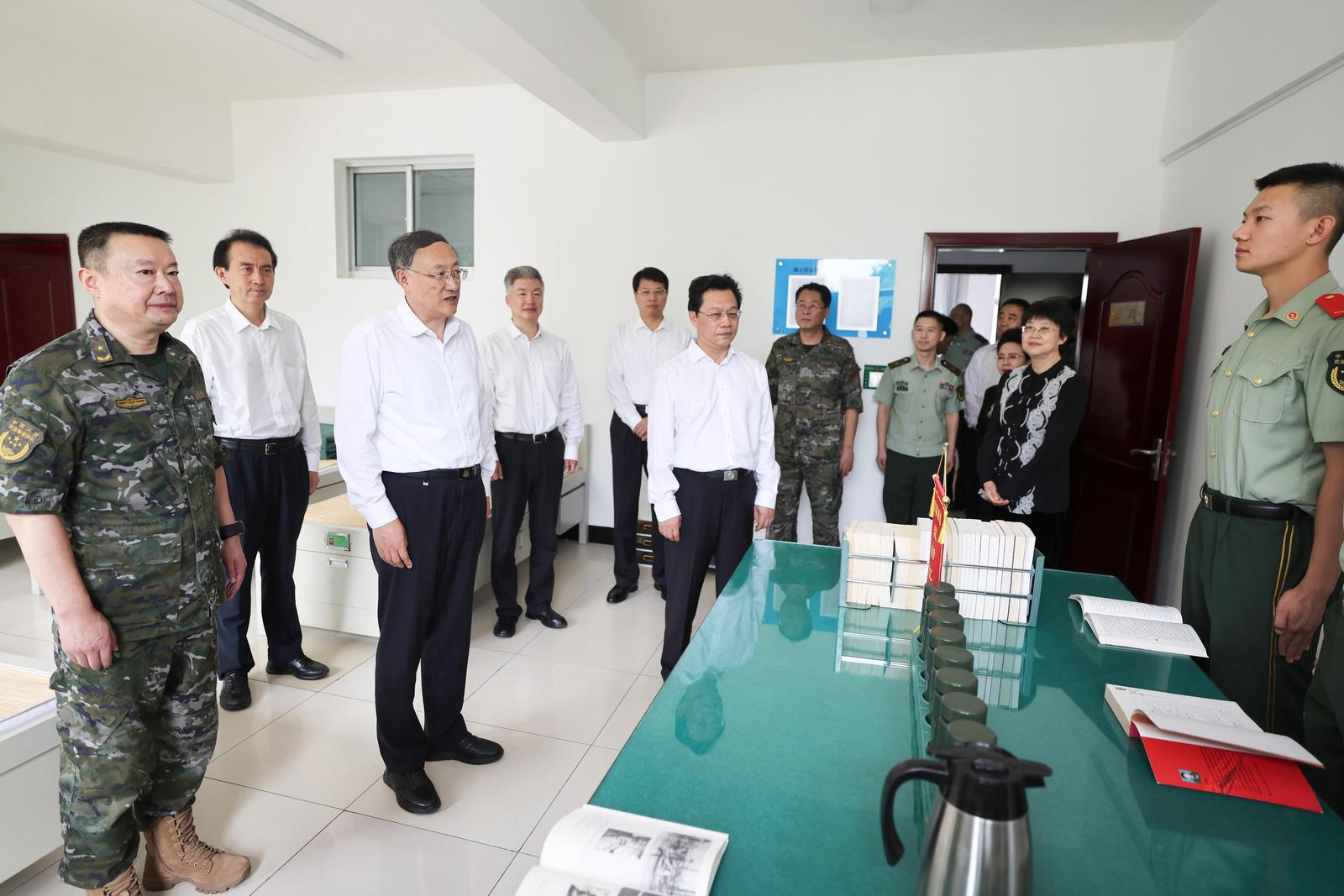 李邑飛、張雨浦、陳雍在武警寧夏總隊(duì),了解部隊(duì)官兵學(xué)習(xí)生活情況。