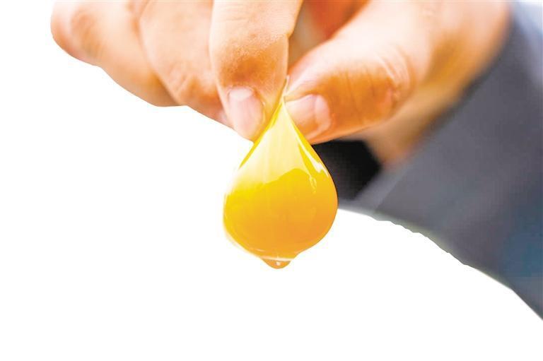 散養的土雞蛋品質好,蛋黃可以被輕松拎起。