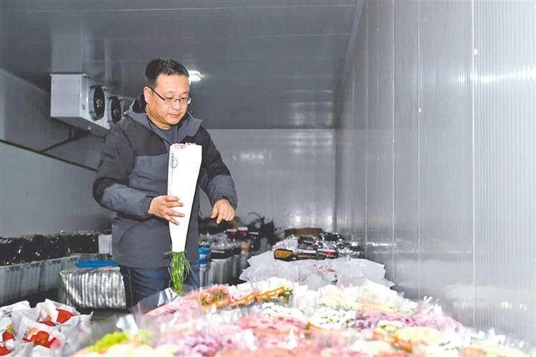 “雙11”期間,寧夏芊藝農(nóng)業(yè)科技有限公司的花卉俏銷全國。圖為工作人員在冷庫內(nèi)整理花卉。