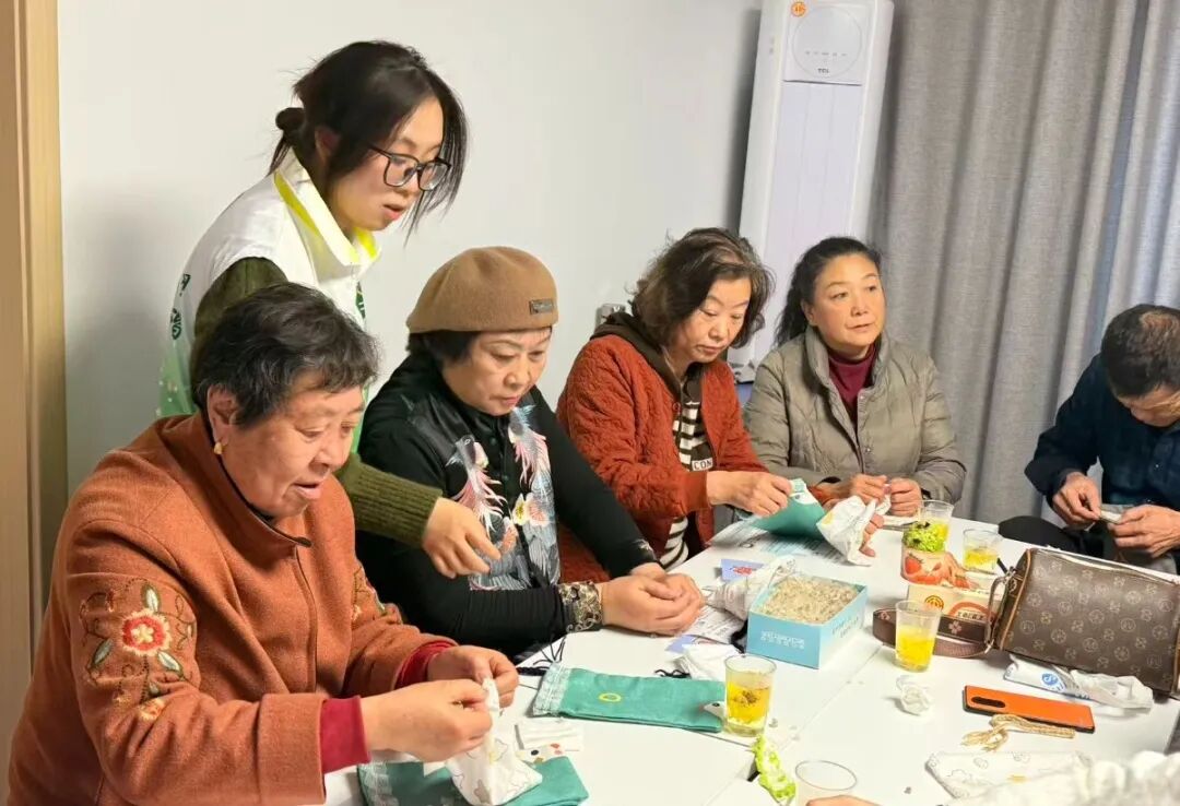 10月28日,社區活動室內暖意融融、茶香氤氳,兩場別開生面的重陽節手工活動如期舉行。桌上整齊擺放著布料、粗鹽、針線等材料,還有精心準備的香茗與可口點心。老年朋友們圍坐一堂,在志愿者的耐心指導下,穿針引線、填充粗鹽,一個個造型別致、實用性強的鹽袋逐漸成形。大家一邊專注制作,一邊閑話家常,茶香中混雜著歡聲笑語,現場氛圍溫馨又熱鬧?!斑@樣的活動太有意義了,親手做的鹽袋敷著舒服,還能和老鄰居們一起聊天品茶,心里真暖和!”剛完成鹽袋制作的張阿姨臉上洋溢著滿足的笑容。