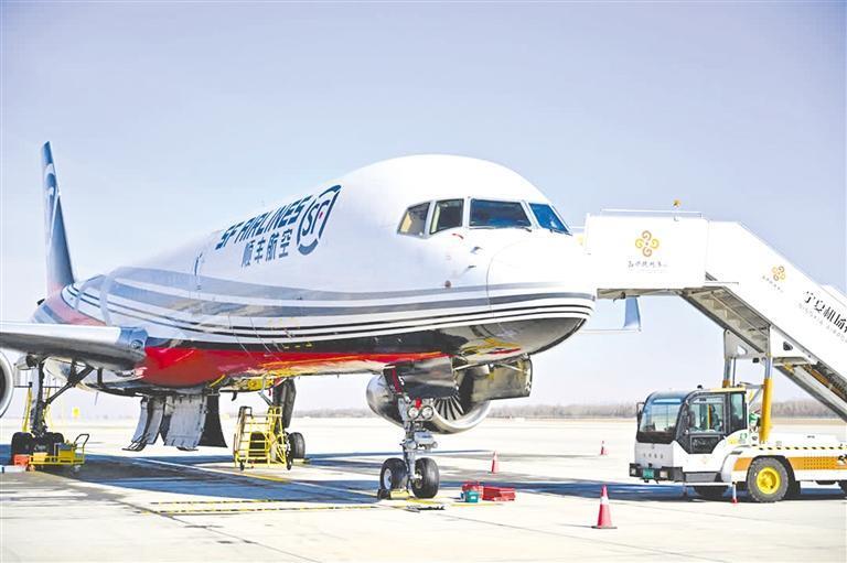 銀川河東國際機場,順豐航空的全貨機剛完成卸貨又迅速裝載新貨準備起飛,寧夏優質農特產品得以跨越千里,實現“朝發夕至”。