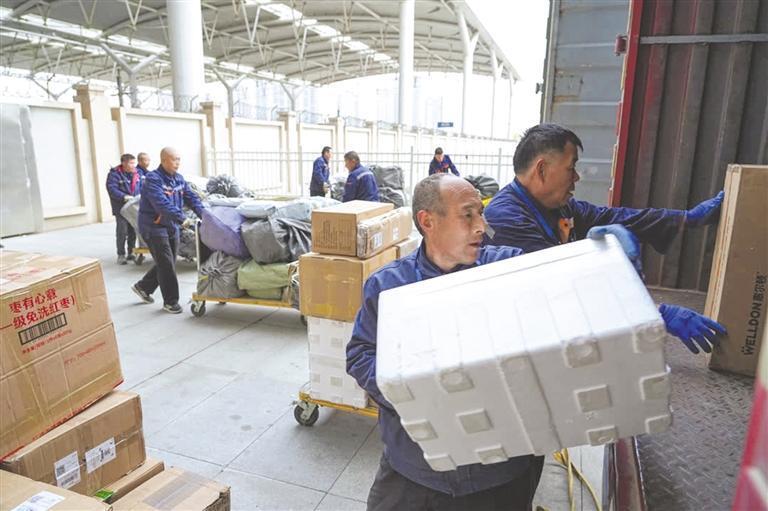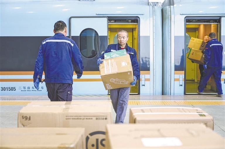 銀川站站臺上,工作人員正在將以牛羊肉為主的600多件包裹快速搬上開往西安的高鐵。“我們開辟高鐵快運‘綠色通道’,提供‘雙11’貨物臨時分揀、中轉作業場地及進出站通道,在保證旅客安全出行的基礎上,實現貨物快進快出,為客戶提供更為優質高效的快運服務。”中鐵快運蘭州分公司銀川站營業部相關負責人張升升介紹。