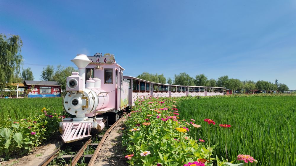 行駛在稻漁空間鄉(xiāng)村生態(tài)觀光園中的小火車。(受訪者供圖)