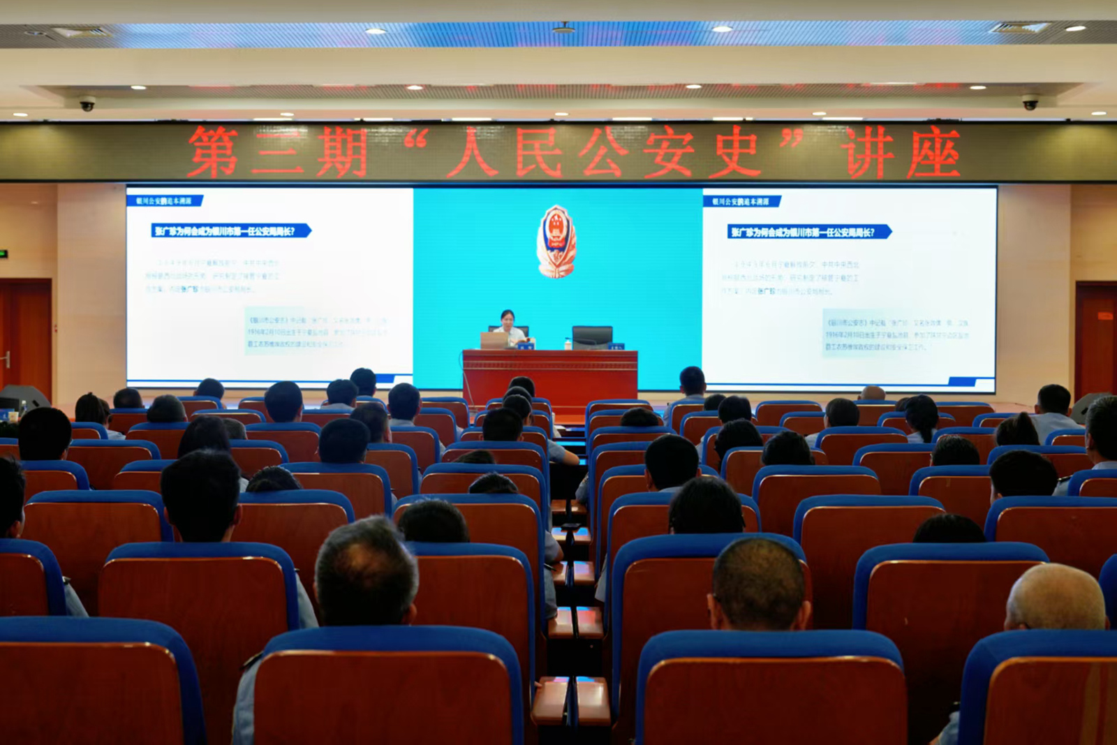 專題黨課如知識火炬,照亮民警心靈。依托主題黨日、“三會一課”等形式,市公安局邀請黨校教授、公安院校專家開展《人民公安史》專題講座,錄制《銀川公安史》微課視頻。通過“平安銀川”新媒體矩陣推送學習,推動廣大民輔警普遍接受一次思想洗禮。