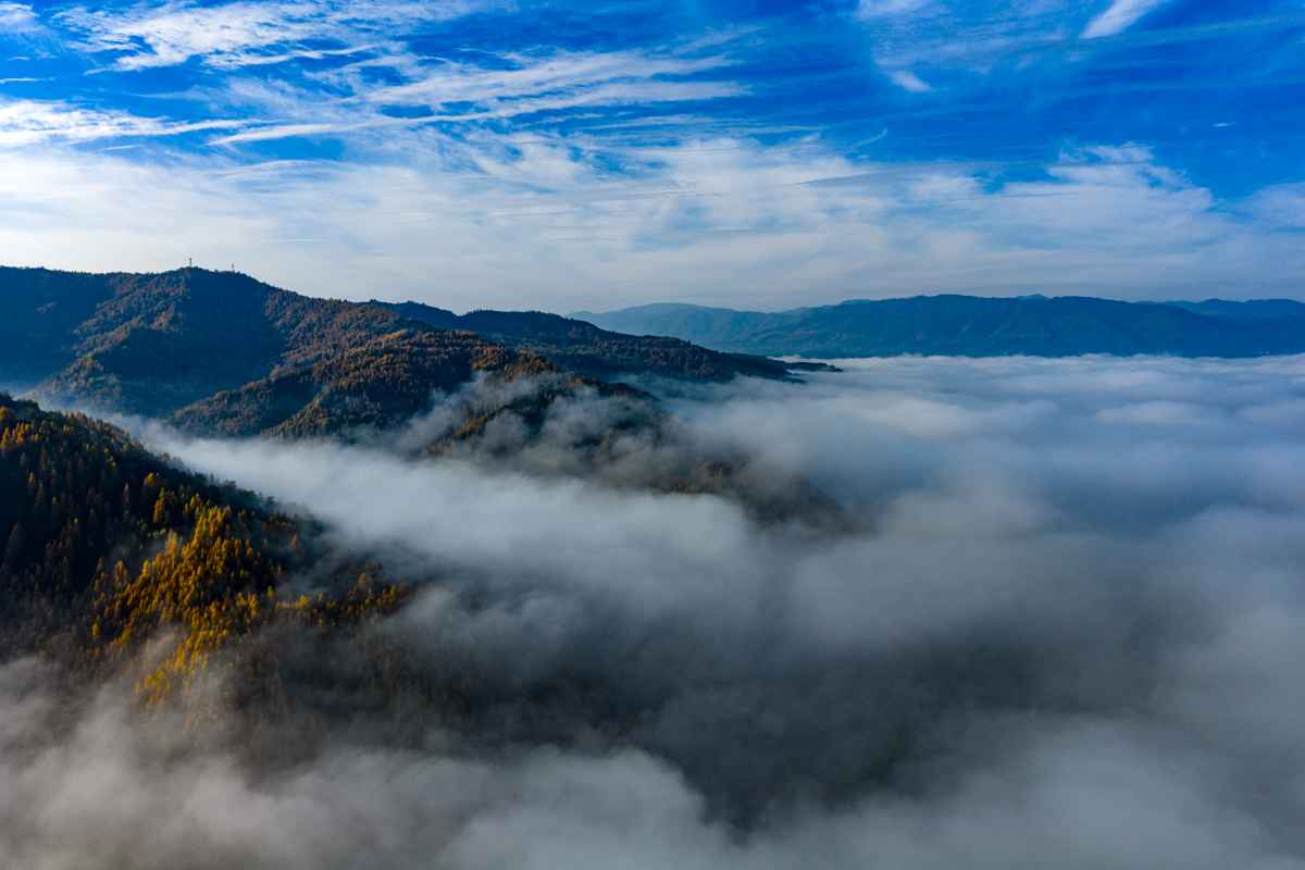 10月19日,一場秋雪之后的寧夏涇源縣,云海茫茫,如紗般的迷霧在秋色斑斕的涇源山水間游動(dòng),讓這個(gè)秋天更加迷人。 寧夏新聞網(wǎng)記者 祁瀛濤 攝