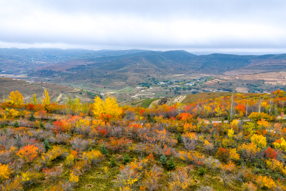 深秋時節,寧夏西吉縣興平梁宛如一幅絢麗的畫卷。蜿蜒的公路盤旋在五彩斑斕的山坡間,樹木像是被打翻的調色盤,染上了金黃、橙紅等色彩。遠處,層層梯田與山巒相依,湖水如鏡點綴其間。云霧繚繞下,這里靜謐而壯美,每一處風景都訴說著秋日的浪漫與詩意,令人心醉神迷。 寧夏新聞網記者 祁瀛濤 攝