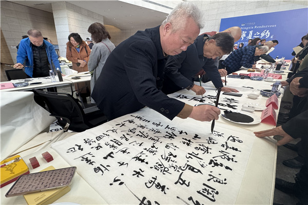 寧夏新聞網訊(記者 李瑤 文/圖/視頻)為展現新時代離退休干部“老有所為、老有所樂”的良好精神風貌,為“增添正能量·共筑中國夢”貢獻文化力量,10月28日,“金秋溢彩 筆繪重陽”銀齡書畫交流雅集活動在寧夏美術館舉行,此次活動特邀40位退休老干部藝術家參與,面向公眾開放了100個可參與墨寶抽獎的預約名額,既是一場“孝親、敬老、暖重陽”的生動實踐,也是以藝術為媒,向老輩、賢者致敬、為傳統文化傳薪的深情表達。