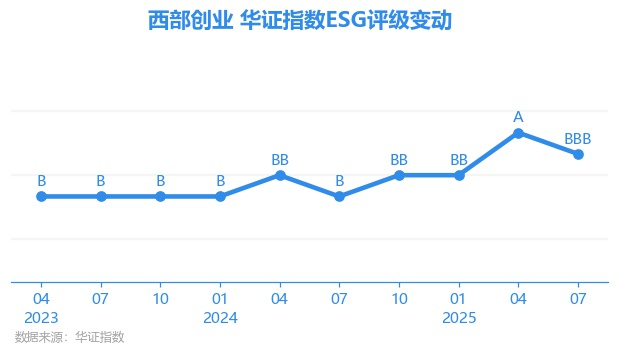 日前,華證指數(shù)公布了新一期的ESG評級結果,西部創(chuàng)業(yè)(000557.SZ)獲得BBB評級(華證指數(shù)評級為C起至AAA九檔,C為最低檔,AAA為其最高一級評級/AA為其第二檔),上一期(2025年4月30日)ESG評級為A。本期ESG評級在22家地面運輸行業(yè)A股上市公司中排名第1(上一期排名第2)。