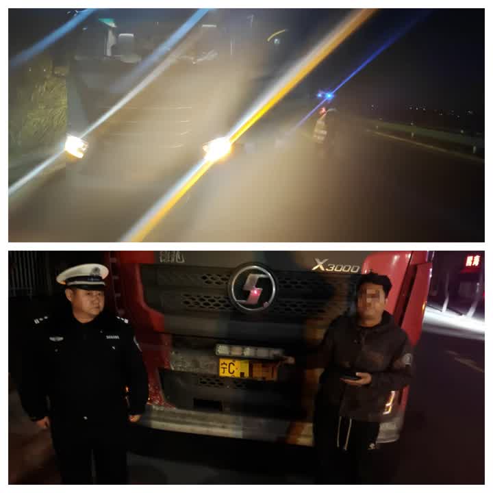 近日,吳忠交警交管二大隊(duì)開展夜間巡邏時(shí),突然看到一道刺眼的亮光襲來,晃得人睜不開眼。定睛一看,對(duì)面駛來了一輛大貨車。在強(qiáng)光照射下,肉眼無法看清該車號(hào)牌,引起了民輔警的注意,立即示意駕駛員靠邊停車接受檢查。