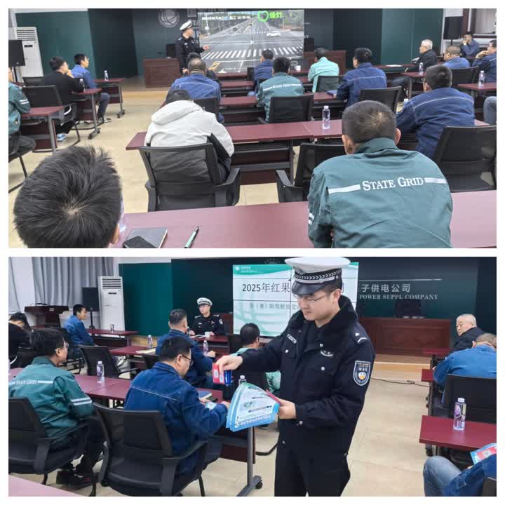 民警結合供電行業外勤作業特點,“以案例警示 + 實操指導”的形式展開宣講。通過播放冬季外勤作業交通事故短片,民警重點剖析了供電搶修車輛在緊急趕路中超速行駛、路口搶行,以及在積雪結冰路段未規范使用防滑鏈、未保持安全車距等典型違法行為引發的事故案例。著重解讀了《道路交通重大事故隱患排查指引(試行)》,要求轄區重點企業定期組織開展宣傳培訓,進一步提升駕駛人的交通安全意識、文明意識和法律意識。