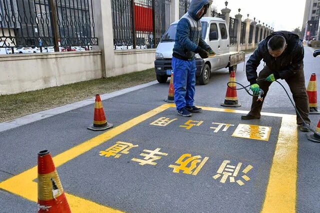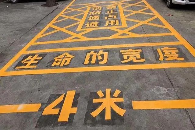 單位或者住宅區(qū)的消防車通道出入口路面,要按照消防車通道凈寬規(guī)劃禁停標線。標線為黃色網(wǎng)狀實線,外邊框線寬20厘米,內(nèi)部網(wǎng)格線寬10厘米,內(nèi)部網(wǎng)格線與外邊框夾角45度,標線中央位置沿行車方向標注內(nèi)容為“消防車道 禁止占用”的警示字樣。在消防車通道兩側(cè)還要設置醒目的警示牌,提示嚴禁占用消防車通道,違者將承擔相應的法律責任等內(nèi)容。