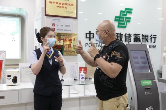 郵儲銀行北京香山支行員工用手語和聽障客戶溝通